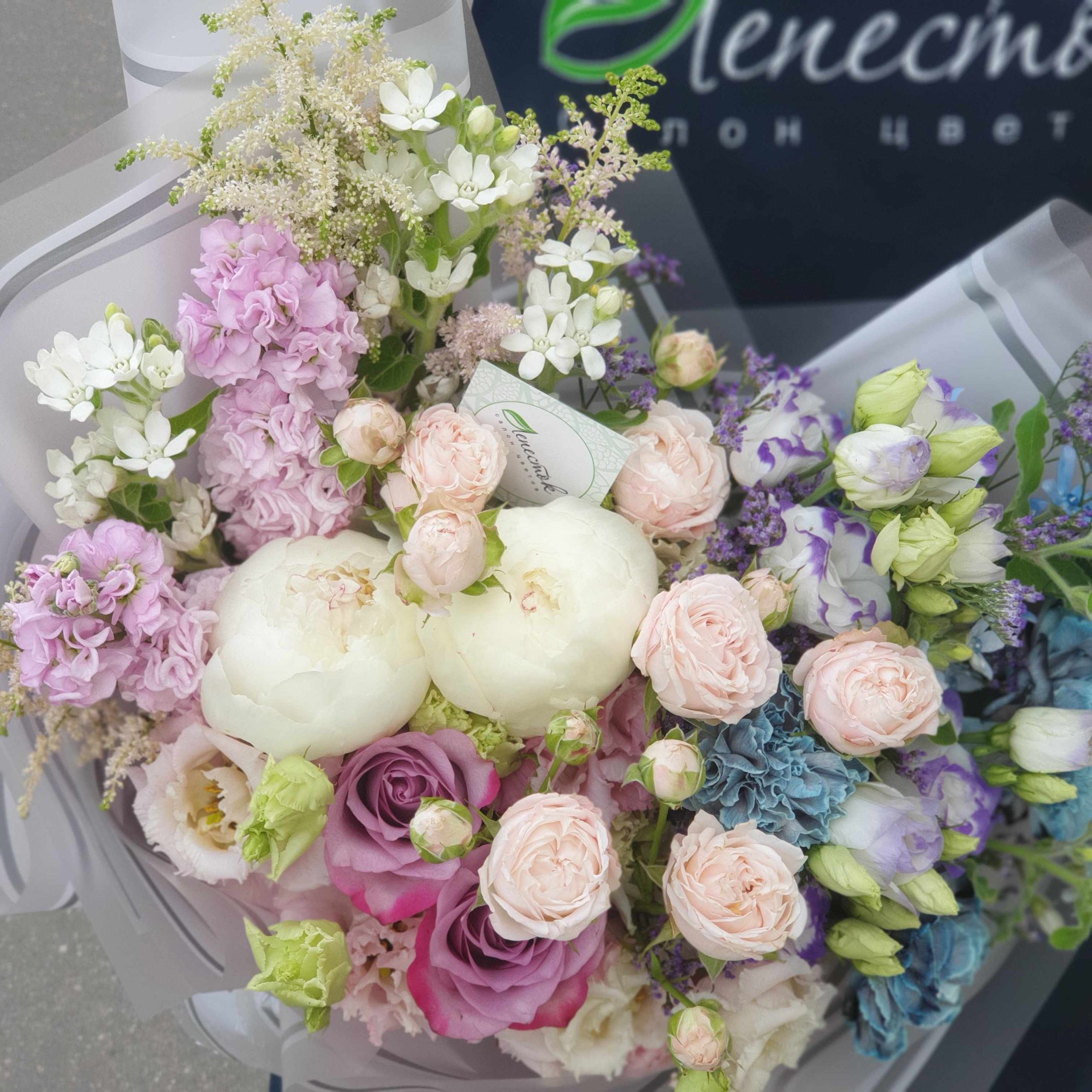 Кустовые розы, Лизиантусы, Пионы, Розы, Хризантемы