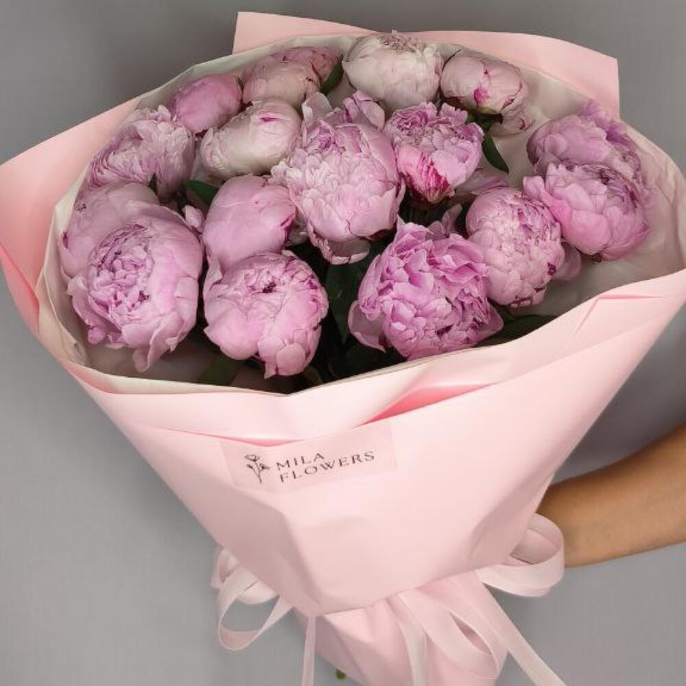 “Пиономания”: 13 розовых пионов в упаковке