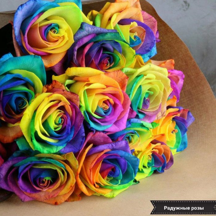 Крафт – 1 шт.Роза радужная – 11 шт.